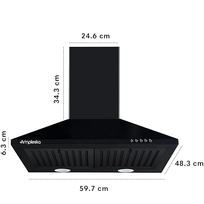 1150 m3/hr Pyramid Kitchen Chimney with Elegant Look, Baffle Filter, Push Button, Efficient Dual LED Lamps, 1 Year comprehensive, 5 Years Warranty on Motor (AKHP 60 BK)
